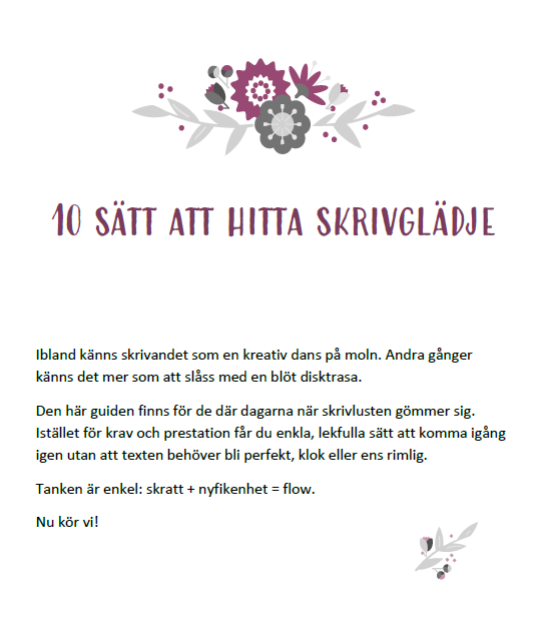 Skrivlust i advent och mellandagarna är en mini-boost för dig som vill komma igång utan press: korta guidande övningar, konkreta tips och ett mysigt sätt att hitta tillbaka till flow – även när tiden är knapp.